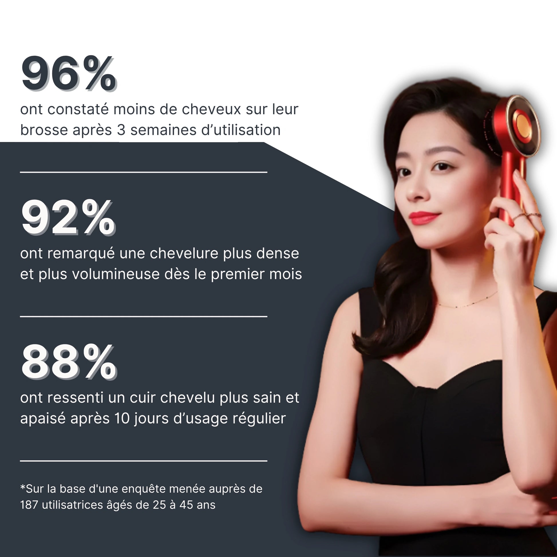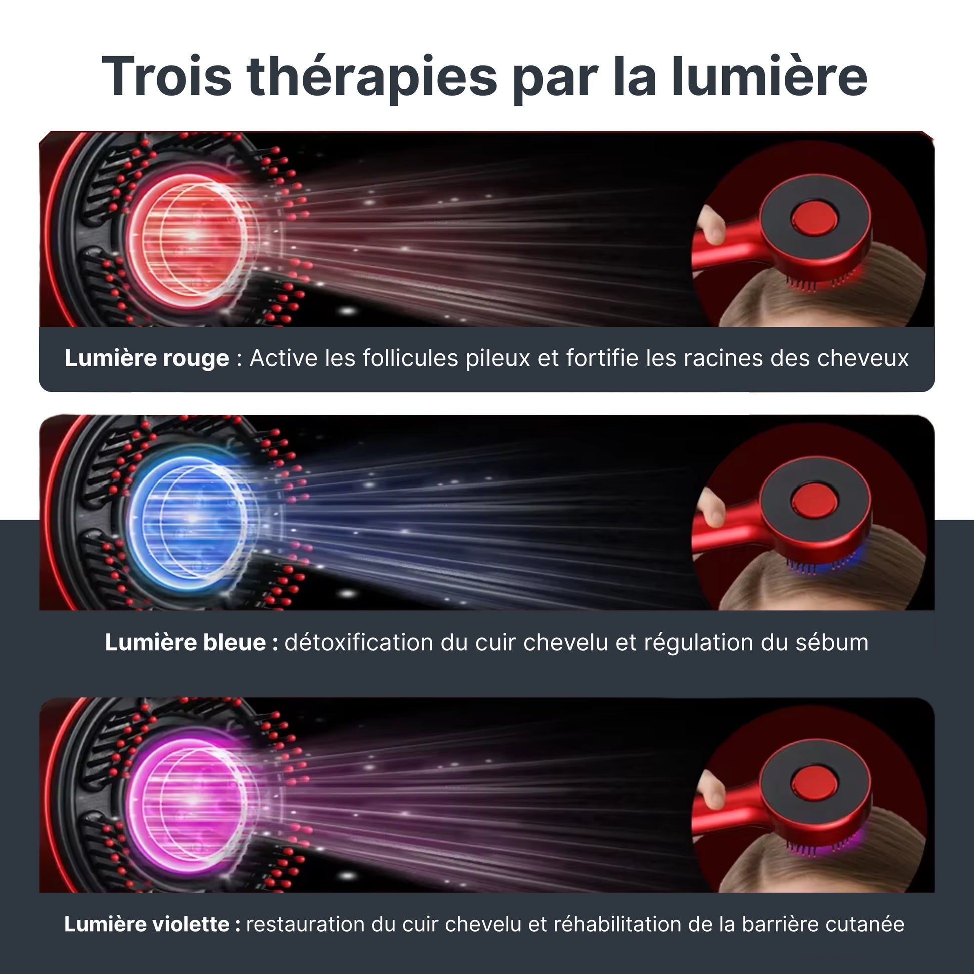 Oui ! La lumière rouge à 630 nm réveille les follicules et le massage stimule la circulation. Résultats visibles dès 3 semaines avec un usage régulier.